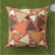 Mosaïque géométrique moderne de milieu de siècle de triangles contourés dans des nuances de brun chocolat, or, orange terracotta et beige sur un fond de tan caramel profond coussin extérieur