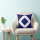 Coussin Diamant Bleu Profond, Bordure Blanche Gras