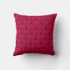 Cet oreiller de lancer a un design art déco de diamants avec des lignes verticales et diagonales et des cercles sur un champ de rose chaud.