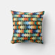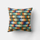 Cet oreiller de lancer a une conception géométrique de diamants de couleur claire se chevauchant sur un champ de noir.