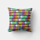 Cet oreiller de lancer a une conception géométrique de diamants néons se chevauchant sur un champ de noir.