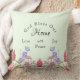 Belle citation chrétienne qui combine "Dieu bénisse notre maison" avec des fleurs sauvages floraux et des papillons. Personnalisez votre nom de famille sur le coussin. Un cadeau ou un décor chaleureux pour tout propriétaire.