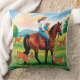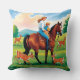 Ce concept de design présente un côté d'un oreiller à double face, avec une mère à cheval avec son enfant regardant un cerf courir sur l'herbe.