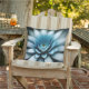 My Outside Oasis", Double Fleur Bleue sur Arrière - plan Noir et coussin extérieur. La fleur bleue représente un calme, une tranquillité et une sérénité qui apportent un sentiment de détente et de confort à votre jardin.