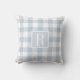 Oreiller de jet personnalisé moderne rustique avec monogramme personnalisé sur motif de vérification de buffalo bleu poussiéreux clair.