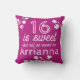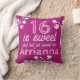 Pink Sweet 16 ans de l'oreiller commémoratif de lancer a des fleurs sauvages chatoyantes et des pois roses sur le dos. Modifiez facilement la couleur arrière - plan violette à toute autre couleur qui correspond parfaitement à votre thème Sweet 16. La police blanche et les fleurs sauvages blanches peuvent également être changées en n'importe quelle couleur. Versatile pour magenta, violet, palettes de couleurs roses chaudes.