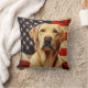 Portrait de fond d'un Labrador Retriever jaune, sa fourrure rendue dans un style peintre, avec un drapeau américain légèrement flou comme arrière - plan. Les yeux du chien sont focalisés sur le spectateur, véhiculant un sentiment de loyauté et de patriotisme. Les couleurs rouges, blanches et bleues du drapeau sont tamisées, créant une atmosphère chaleureuse et nostalgique.