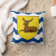 Lancer l'oreiller avec le design avec un drapeau du comté historique de Hertfordshire, en Angleterre, Grande-Bretagne; drapeau avec une illustration d'un cerf dans un bouclier jaune sur blanc et bleu ondulé arrière - plan