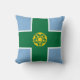 Lancer l'oreiller avec le design avec un drapeau du comté historique de Derbyshire, en Angleterre, Grande-Bretagne; drapeau bleu avec une croix verte et un Tudor rose en or dans le centre