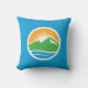 Un coussin avec un design avec le drapeau de Provo, Utah. Un drapeau bleu avec le logo de Provo City au centre. Le logo représente le lac de l'Utah et les sommets de montagne avoisinants avec le soleil levant en arrière - plan