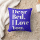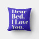 Coussin Drôle Cher lit, I Love You Cobalt Bleu et Blanc