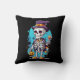 Un coussin avec l'illustration d'un squelette humoristique. Portant un chapeau haut, tenant un verre. Il a un grand sourire sur le visage. Amusement sympa et éffrayant pour Halloween.