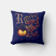 Drôle Serial Killer Typographie Éffrayant Pumbkin monogrammed Navy Blue et l'or grungy Throw Pillow.