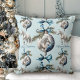 Coussin Élégant bleu Noël blanc cheval motif