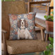 Elégant Spaniel On Floral Arrière - plan Throw Oreiller - un délicieux mélange d'élégance canine et de beauté artistique. Cet excellent oreiller à jetons dispose d'un élégant espagnol, dégageant charme et grâce, dressé contre un arrière - plan floral étonnant. Le motif floral complexe ajoute une touche de sophistication et d'élégance, faisant de ce coussin un ajout captivant à tout espace de vie.