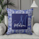 Élégant Coussin de monogramme bleu initial. Ce design bleu présente votre nom et prénom monogrammé en typographie moderne gris clair imprimé sur un arrière - plan gris-bleu géométrique à motif. Cet élégant design branché est parfait pour votre chambre, chambre familiale ou salon. Personnalisez ce coussin élégant avec l'initiale monogrammée de votre famille et le nom de famille pour créer votre propre oreiller à lancer personnalisé. Vous pouvez modifier toutes les couleurs et polices de texte, cliquez pour customiser plus loin sous la zone de personnalisation de texte, ce qui vous amènera dans l'outil de conception. Un cadeau unique pour l'anniversaire, les fêtes et toute occasion spéciale. Que ce soit pour les valentines jour, Noël ou comme cadeau en général, il fait une grande idée cadeau