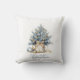 Coussin Elégant Joyeux Arbre de Noël Or bleu Aquarelle