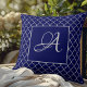 Coussin Elégant Marocain damassé marine Monogramme bleu