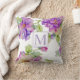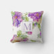Un coussin floral d'aquarelle élégant aux couleurs violet, rose, sauge et rougir. monogramme personnalisable.