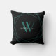 Coussin Élégant Monogramme Turquoise noir - Script de nom