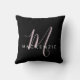 Coussin Élégant Noir Noir Blush Pink Script Monogramme