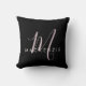Élégant Noir Noir Blush Pink Script Monogramme Lancer Oreiller. Un élégant monogramme Blush Pink combiné à une police blanche de san-serif propre donne un look contemporain.