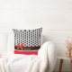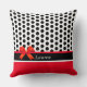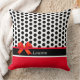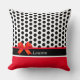 Pois noirs élégants, ruban rouge sur oreiller blanc.