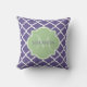 Un élégant carré à motif quatrefoil pourpre et poussiéreux lance l'oreiller avec un badge à coquille en vert tendre que vous pouvez personnaliser en ajoutant votre nom et monogrammed initial à. Il fait partie de la collection de printemps Ultra Violet et Nile Green.