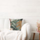 Des feuilles d'aquarelle décorent ce joli coussin botanique à thème automne dans une palette de couleurs vert émeraude aux accents d'or ocre.