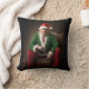 Photo d'un portrait de Donald Trump assis sur une chaise en cuir marron portant un costume d'elfe de Noël