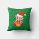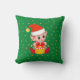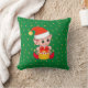 Joli elfe de Noël et étoiles d'or sur l'oreiller à lancer arrière - plan vert.