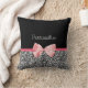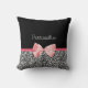 Un coussin empreinte de léopard à la mode noir et blanc avec un joli ruban rose enveloppé comme un cadeau. Personnalisez en ajoutant votre nom. Un cadeau parfait pour une fille ado !
