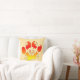 Empreinte de patte de chien de style dessin mignon dans les tons jaune, orange et rouge. Des oreillers à lancer personnalisés. Idée cadeau pour les amoureux de les chiens de tous âges.
