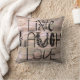 Coussin en bois rustique de décor de signe d'amour vivant de rire