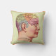 Vintage Phrenology Head Coussin en plusieurs styles, tailles et tissus (y compris le tissu EXTÉRIEUR!). Dessin coloré Vintage de la légende de ce que les différents bosses et rainures sur la tête signifient. La pharmacologie était très populaire dans le passé. L'arrière du coussin est composé de corail et d'orange muets solides qui correspondent à la bordure autour de l'image à l'avant. Très mignon, amusant et définitivement un morceau de conversation!