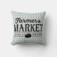 Agritourisme / Maison de campagne décorée de "Farmer's Market - Locally Grown", recouverte de pochoir noir sur gris pastel et blanc en vichy à damiers arrière - plan