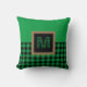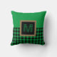 La conception de l'oreiller à jetons de buffle vert et noir de Mme Monogram comprend votre monogramme en plaid de buffle vert et noir placé sur un carré noir à l'intérieur d'une bordure avec accent de burlap. L'arrière - plan est mi-assorti à gros buffle vert et noir plaid et mi-vert solide. #BuffaloPlaid #En vichy #Monogram