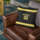 Donnez au fan ultime le coussin ultime, personnalisé avec son nom ou son équipe et son numéro. Côté inverse, il y a une texture de terrain de football.