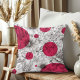 Love neutrals mais parfois besoin d'un peu de POP de couleur? Cet oreiller à jetons carrés est parfait pour vous! Il présente un croquis de fleurs de pivoines noir et blanc, associé à des cercles ronds de rose magenta. À la fois élégant et moderne, la recherche de votre décor de salon d'été!