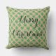 Fabuleux étoiles vertes pointillées sur l'oreiller à lancer taupe. Design estampillé à la main. Texte Joyeux Noël. Créé avec un sourire de Iolantesdesigns : -) !
