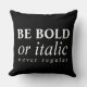 Elégant et chic, ce Black and White Be Bold or Italic, Never Regular Throw Pillow est le coussin idéal pour les écrivains et tous ceux qui ne veulent jamais être comme tout le monde.