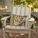 Ce coussin extérieur décoratif de coussin présente un motif abstrait d'une belle aile de papillon de monarque (plexippus de Danaus) en couleurs d'orange, de jaune, or, noir, brun et blanc.