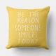 Rehaussez votre espace extérieur avec cet oreiller extérieur jaune de grande taille inspirant. Le fond jaune simple met en valeur un message stimulant : 'Soyez la raison pour laquelle quelqu'un sourit aujourd'hui.' Imprimée dans une police manuscrite décontractée, cette citation inspirante apporte de la positivité et de la chaleur à votre terrasse, votre porche ou votre jardin. La grande taille de l'oreiller en fait un élément d'accent frappant tout en offrant un confort moelleux. Parfait pour l'été, cet oreiller sert de rappel pour répandre la joie et avoir un impact positif. Embrassez le pouvoir de l'inspiration et créez une atmosphère accueillante avec ce délicieux coussin extérieur.