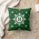 Coussin fait sur commande de flocon de neige de monogramme en vert de Noël. Coussin personnalisé de vacances avec les flocons de neige blancs. Grand flocon de neige au centre du coussin où vous pouvez ajouter votre initiale. Coussin accessoire de Noël de décor unique de maison - personnalisé avec votre monogramme.