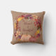 Ce joli oreiller de famille saisonnier présente le script "Blessed & Thankful" à l'intérieur d'une couronne d'automne colorée. La couronne est faite de feuilles, de baies et de fleurs, avec deux citrouilles en bas. Les couleurs comprennent le violet rouge, l'or, l'orange pâle et plus. L'image est placée sur un arrière - plan d'automne. Le dos du coussin a la même image de couronne avec votre texte personnalisé.