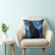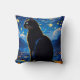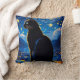 Fantasy cat throw pillow with a beautiful black cat looking over a city at nighttime with a starlit sky in the background.
