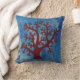 Coussin Faux brodé corail rouge sur bleu Abstrait