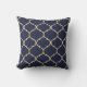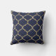 Épais votre décor de vacances avec cet oreiller chic à linges. Ce design présente un arrière - plan bleu nuit avec un motif en quatrefoil d'or. Il aurait l'air parfait dans votre salon, votre salon, votre chambre ou votre espace de vie extérieur. Conçu par l'artiste © Susan Coffey.