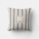 Une ferme moderne sur mesure lance l'oreiller avec votre monogramme et votre nom de famille sur une bande de tiques beige et bleu de la ferme.