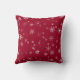 Festive Rouge blanc Motif Fléau de neige Noël Jeu d'oreiller. Le design a des flocons blancs de différentes formes et tailles sur un arrière - plan rouge.